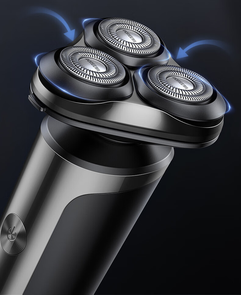 + Ba đầu cạo quay song song, tự động điều chỉnh vị trí cạo giúp máy cạo sát sơn, sạch hơn